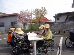 17日には苑の桜を見ながらおやつを召し上がって頂きました♪