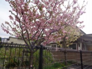 今年は桜の開花が早く葉桜になっている所も多いですが、愛光苑すざかの桜や近所の神社の桜は遅咲で綺麗な花を咲かせています☺